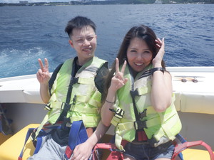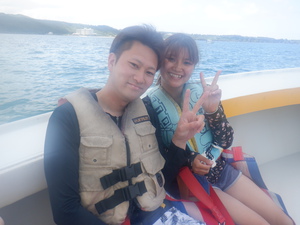 青の洞窟ツアー後にご参加いただいたお客様、これからマリンスポーツを楽しむお客様。
